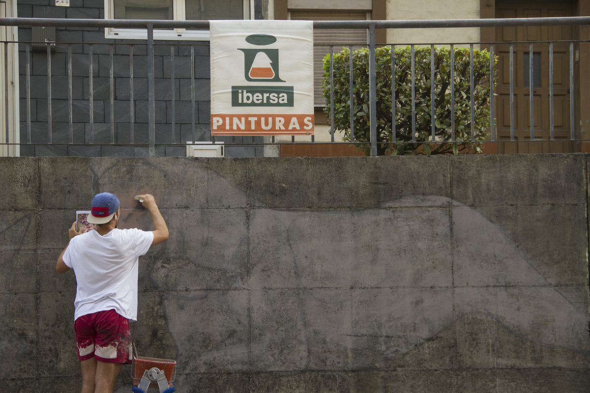 The mural made in Trubia, “Forjando comunidad”, is made for the centenary of the Trubia Casino. The piece recovers the collective memory and vindicates the value of this social space created under the wing of the now-closed weapons factory located in the town.